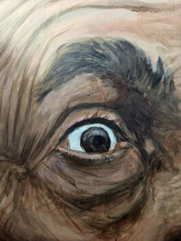 Each painting is finalized with a finishing element. These elements are added by me to complete the idiotic scene. The materials are sourced either from my body or my environment. By this addition, I am bound to the image, and I claim my place in the ideocracy which I try to depict. My idiocracy merged with my subject.