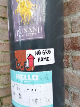 During the campaign for the municipal election of 2018 in Groningen, we appropriated the name and logo of the local LET’S GRO festival, changing it into LET’M GRO. We spread stickers with pro-refugee slogans around the city and created the hashtag #letmgro on social media. This was part of our attempt to spread a rumor that a big refugee camp will be built in the neighboring Noorddijk area, within the current context of refugee settlements being pushed further outside the city, as well as the massive student accommodation crisis.