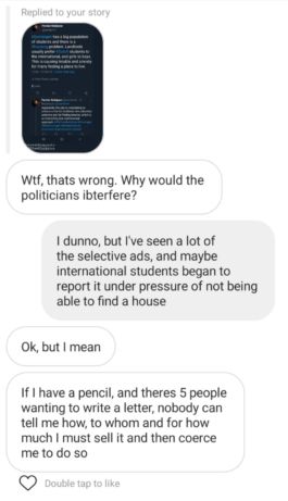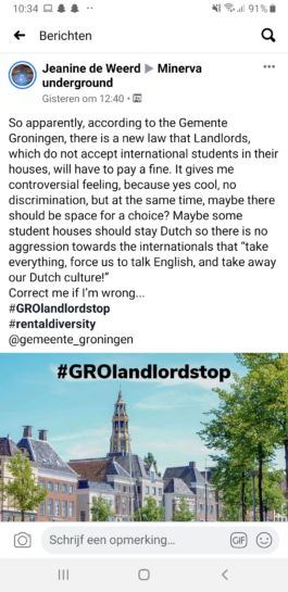 During the project week, I and Angeliki, together with students of Minerva Art Academy, staged a public intervention where a rumour was started about the international housing crisis of Groningen. The rumour was that the municipality was considering enforcing a fine on landlords who advertise housing properties to tenants exclusive of international students.