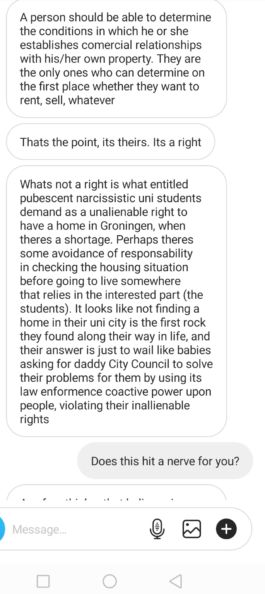The rumour was in reaction to the very real housing shortage that is causing a lot of international and local students frustration. There have been ads posted online that called only for Dutch citizens or called even more specifically for female Dutch tenants. We were curious about the reactions of the Groningen residents to this possible law, to reveal if there was indeed a deep-seated attitude of xenophobia.